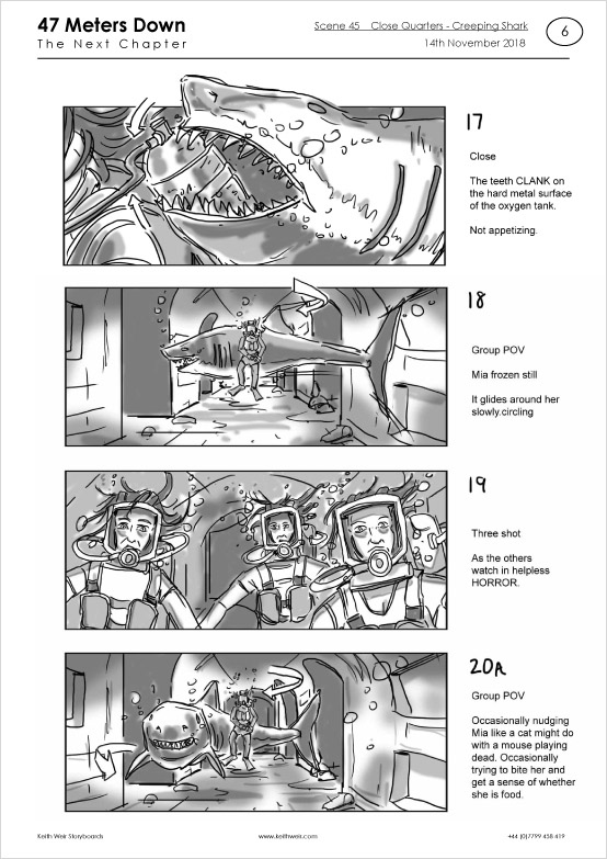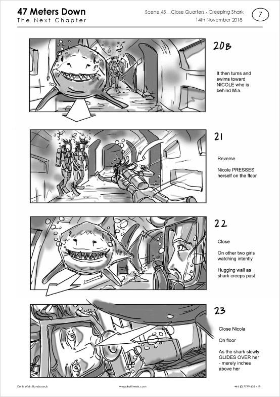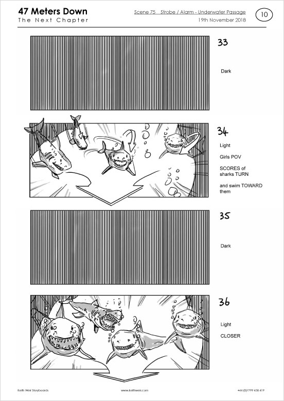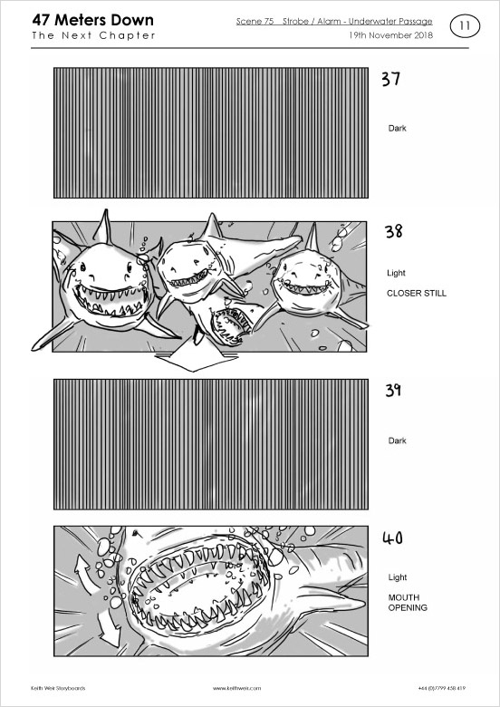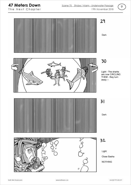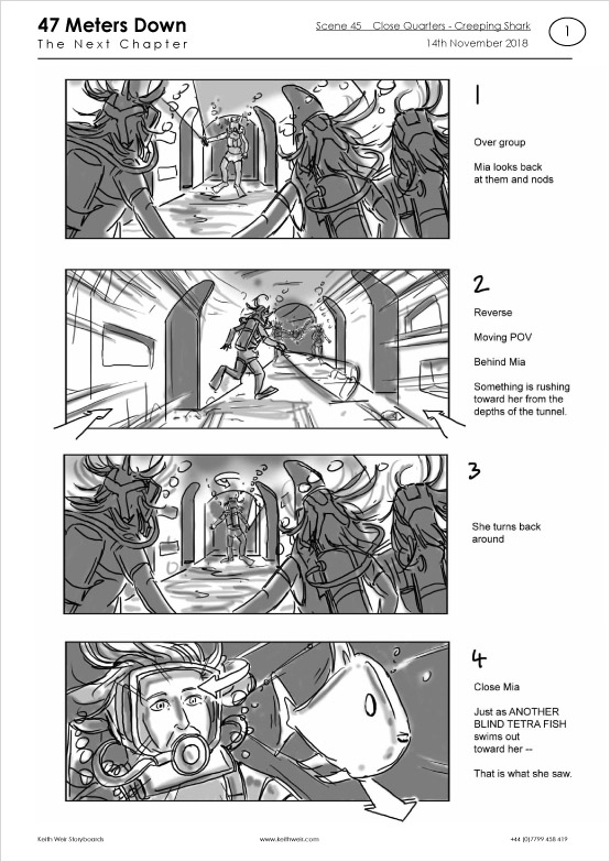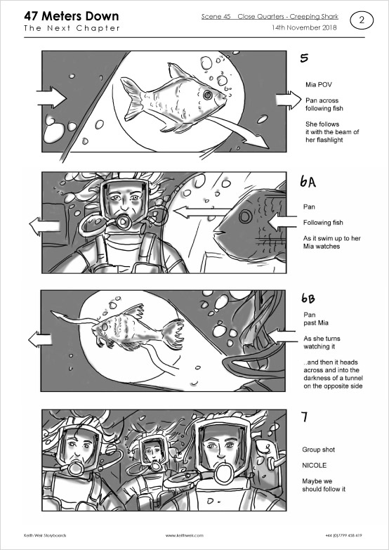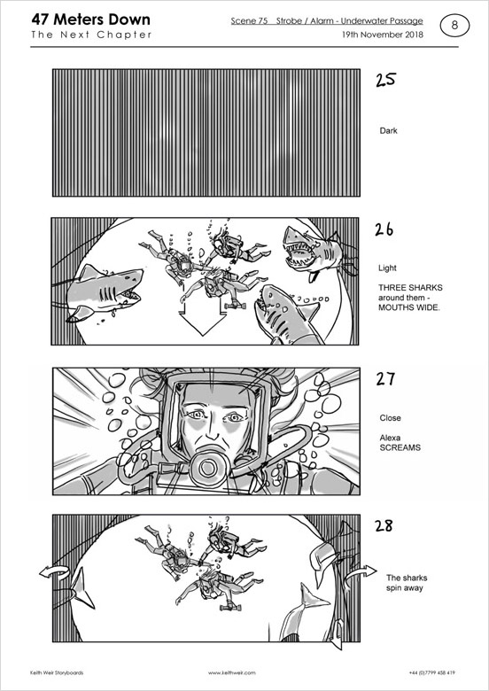 Storyboards for feature film '47 Meters Down : Uncaged'