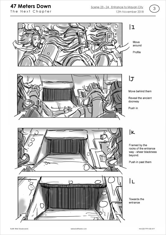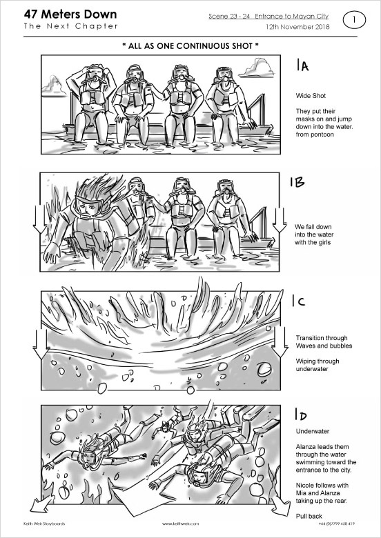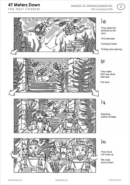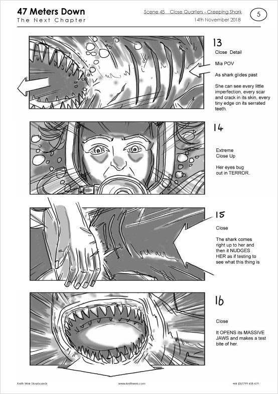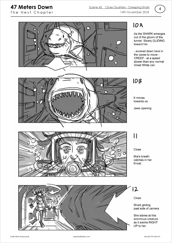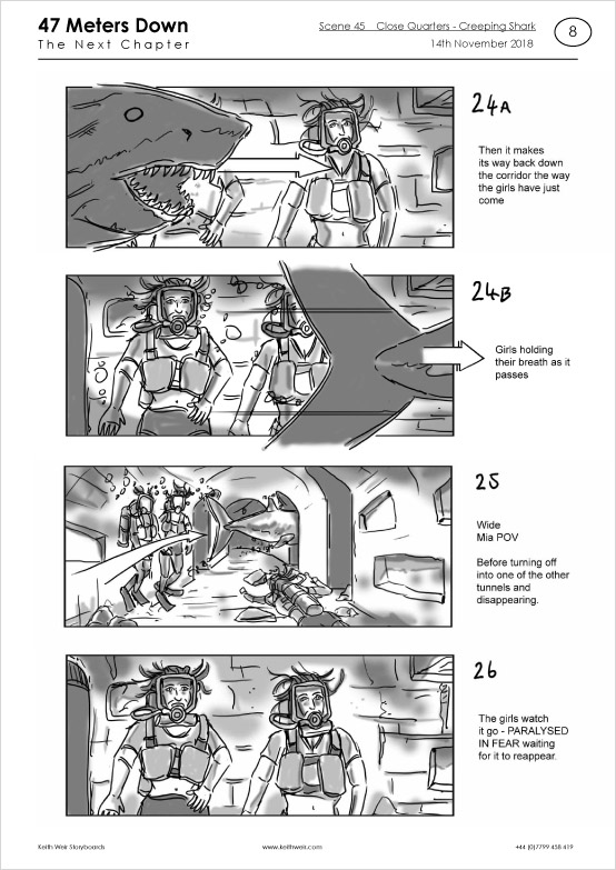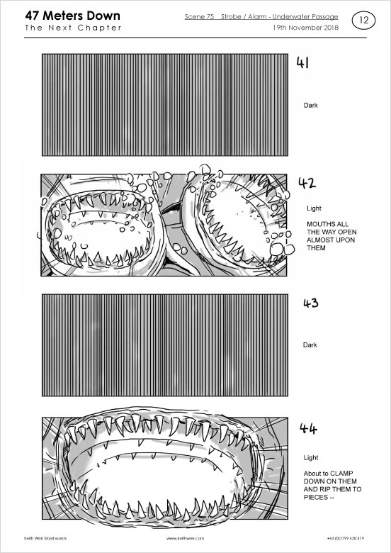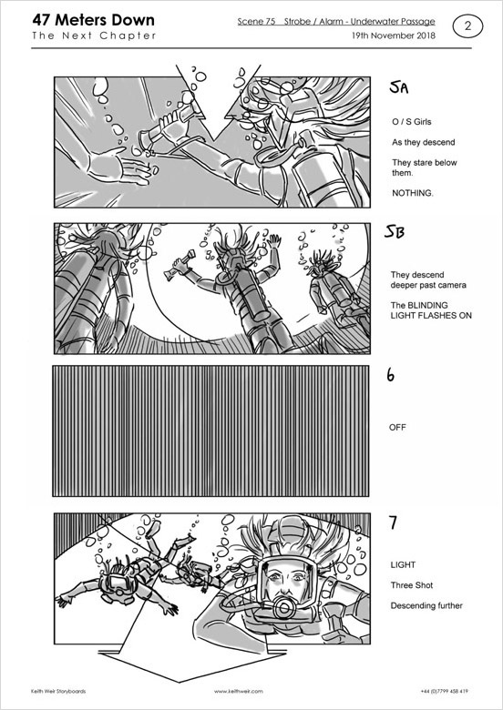 Storyboards for feature film '47 Meters Down : Uncaged'