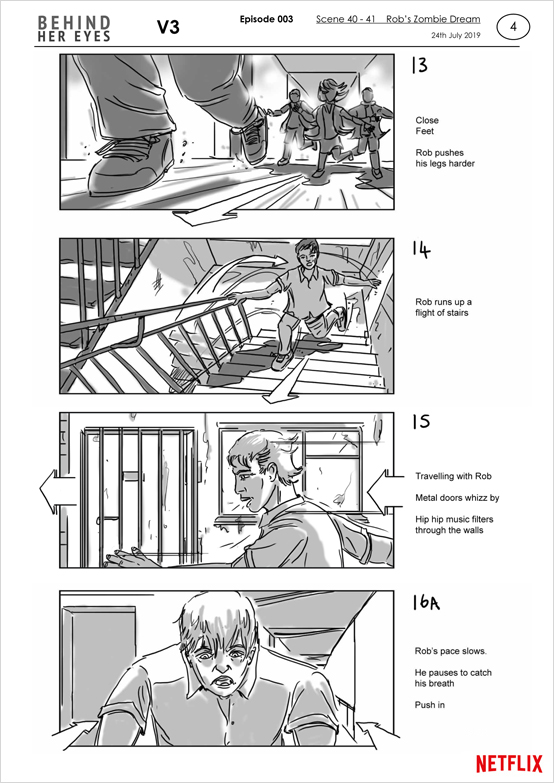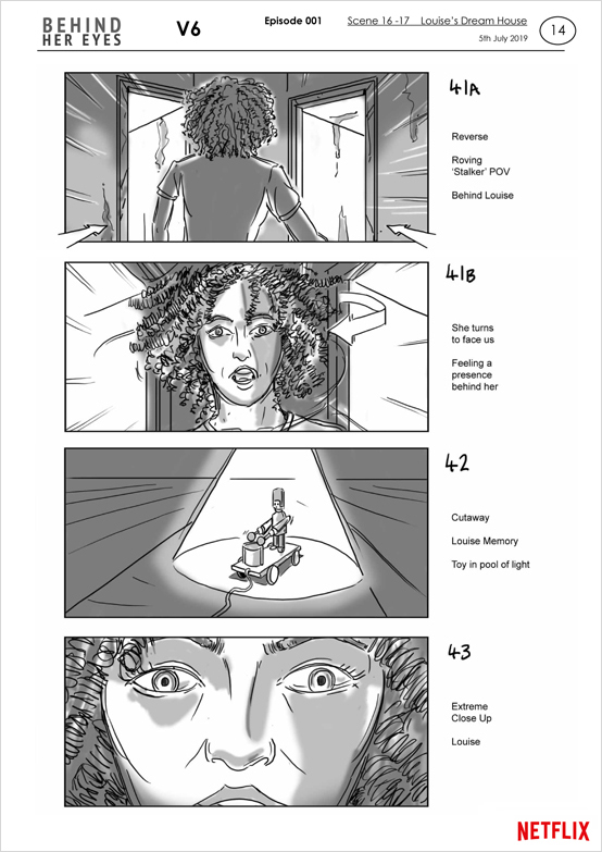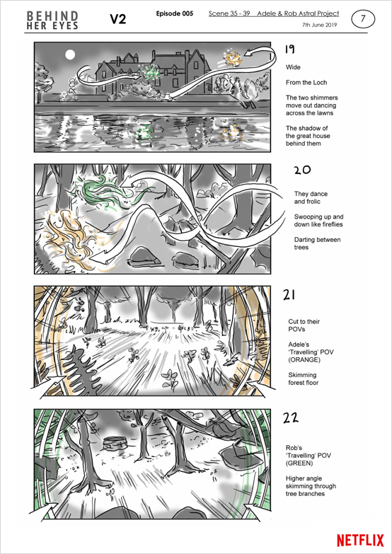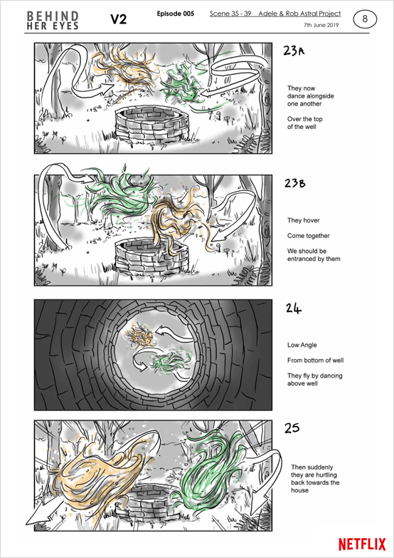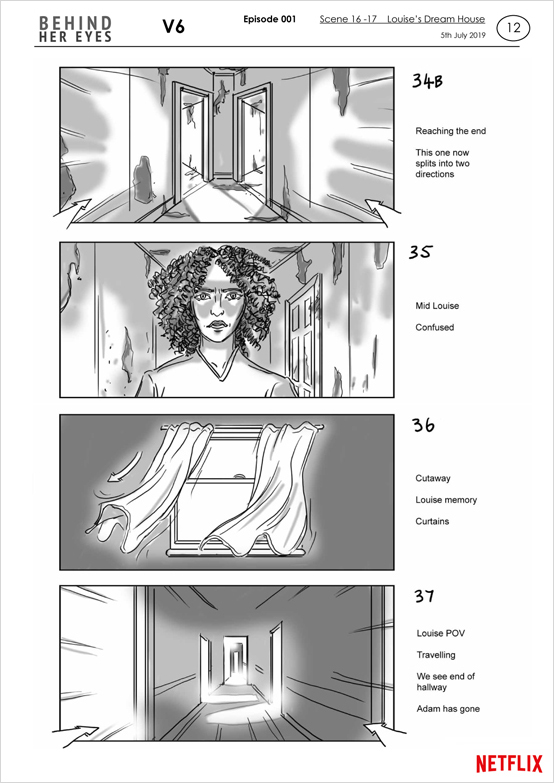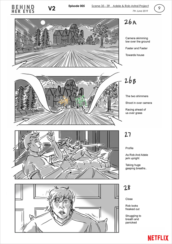 A selection of some of the storyboards for Netflix limited series 'Behind Her Eyes'